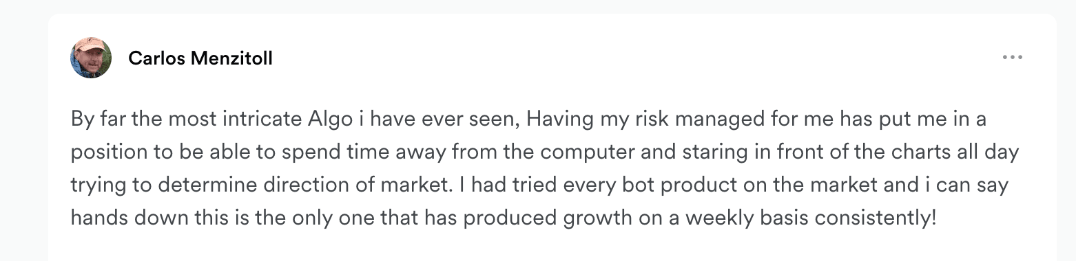 Our Smart Bots are designed to work for you, once you're in a trade they begin monitoring every datapoint, and they execute trades with pinpoint accuracy to exit your long or short position with maximum profits